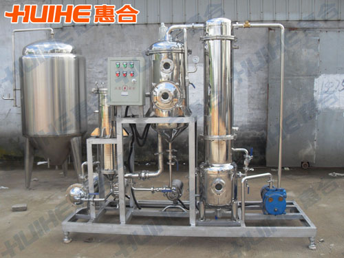 The single effect outer cycle vacuum concentrator is composed of heater, evaporator, defoamer, condenser, cooler and liquid receiving tank. The parts that contact materials are all made of stainless steel. The equipment is applicable to evaporation and concentration of liquid materials in pharmacy, food, chemical industry, light industry and etc. The concentrating time is short and the evaporating speed is high, which can better protect the heat sensitive materials from being damaged.